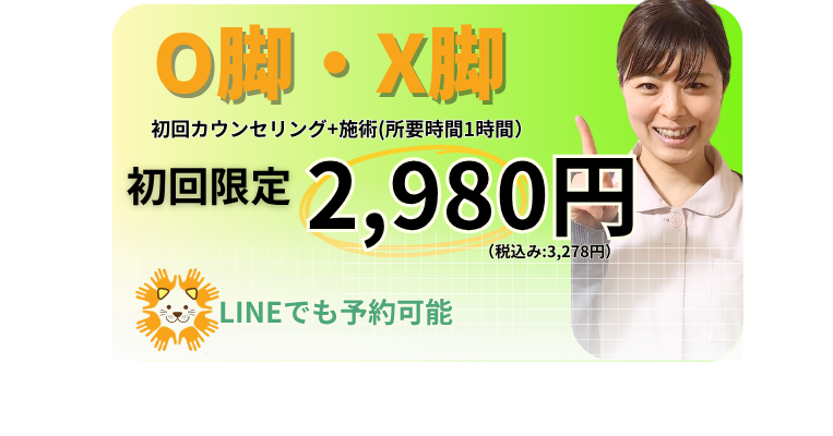 わいわい整体院ではO脚やX脚の専門施術を行っています。